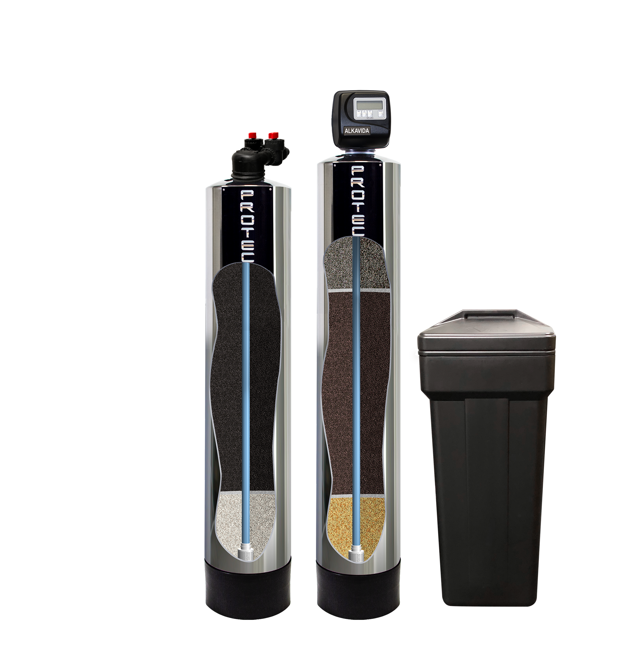 The Protector Plus from Alkavida is a high-performance, American-made whole-house water softening system with built-in chlorine reduction. It's engineered with 10% cross-linked black resin—offering unmatched hardness removal, superior chlorine resistance, and long-lasting reliability.